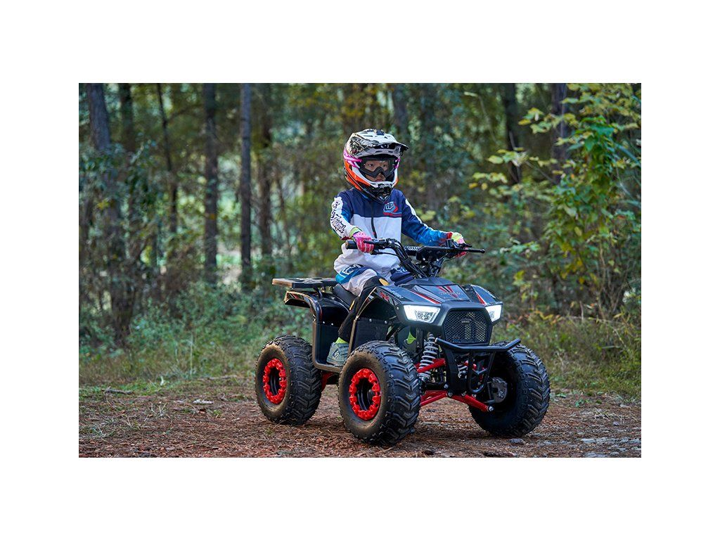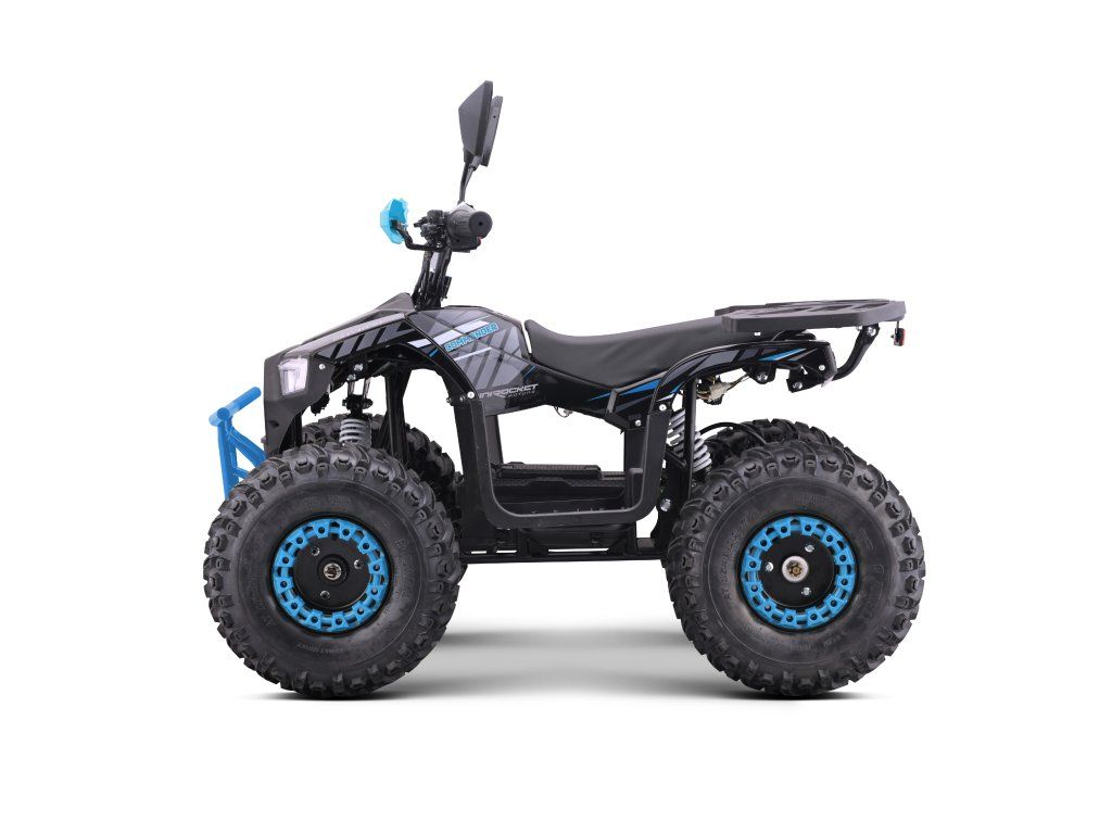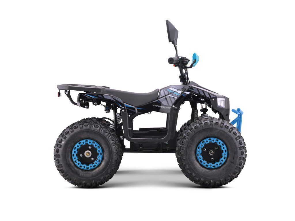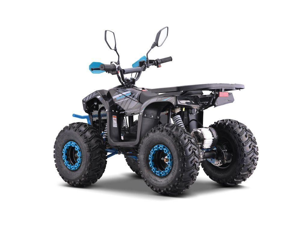 Vybavena je bezkartáčovým elektromotorem s ohromujícím výkonem 1200W. Ten je schopný rozjet čtyřkolku až na 38km/h. Dojezd na jedno nabití je až 18km(dle zatížení a terénu). Dále je pak vybavena 7" koly, pevným rámem, krytem řetězu, přední a zadní dvojitou kotoučovou hydraulickou brzdou, LCD indikátorem stavu baterií, dětskou pojistkou ( 3-polohový omezovač 38 - 27 - 17 km/h)