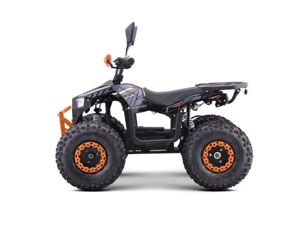 Vybavena je bezkartáčovým elektromotorem s ohromujícím výkonem 1200W. Ten je schopný rozjet čtyřkolku až na 38km/h. Dojezd na jedno nabití je až 18km(dle zatížení a terénu). Dále je pak vybavena 7" koly, pevným rámem, krytem řetězu, přední a zadní dvojitou kotoučovou hydraulickou brzdou, LCD indikátorem stavu baterií, dětskou pojistkou ( 3-polohový omezovač 38 - 27 - 17 km/h)