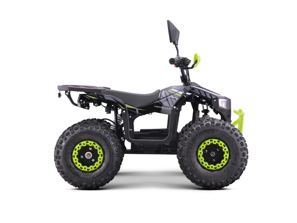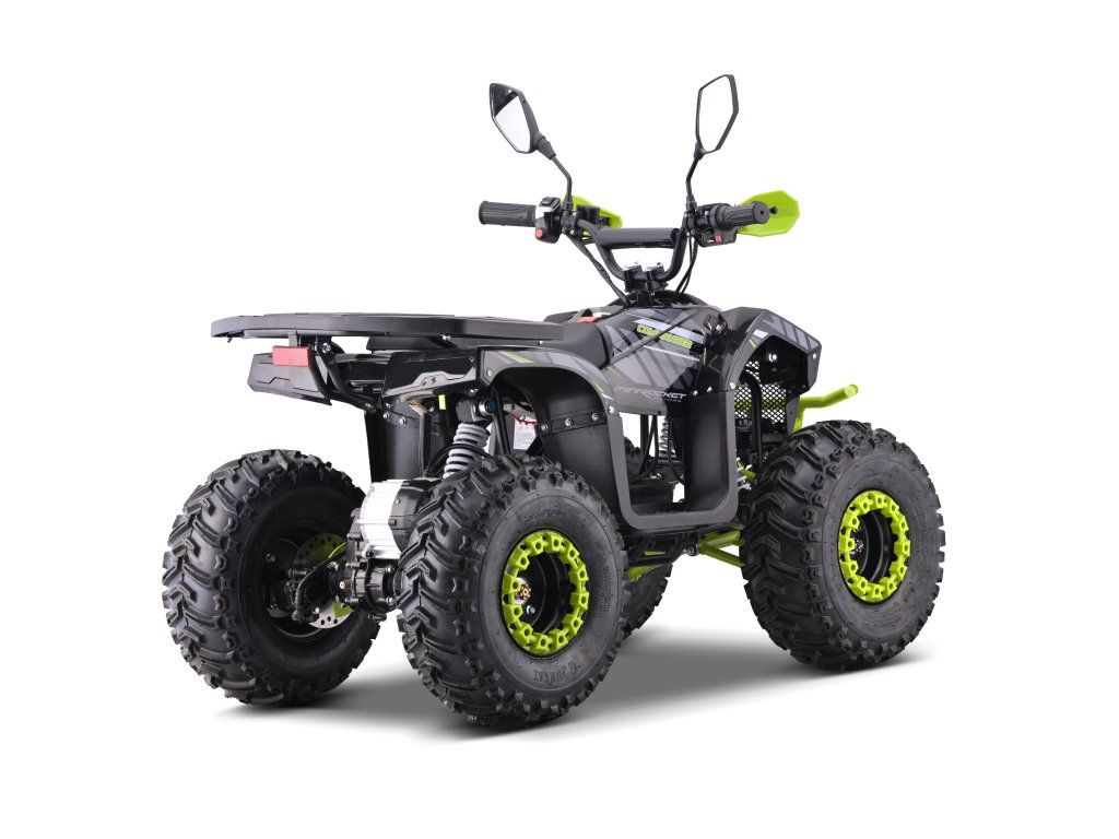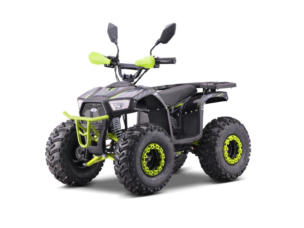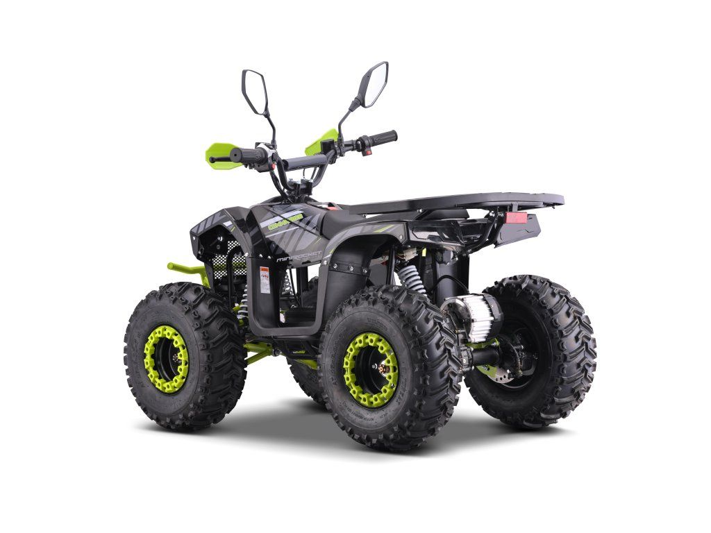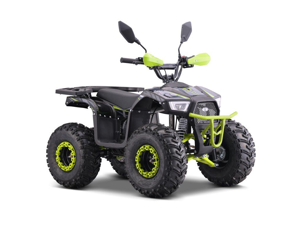 Vybavena je bezkartáčovým elektromotorem s ohromujícím výkonem 1200W. Ten je schopný rozjet čtyřkolku až na 38km/h. Dojezd na jedno nabití je až 18km(dle zatížení a terénu). Dále je pak vybavena 7" koly, pevným rámem, krytem řetězu, přední a zadní dvojitou kotoučovou hydraulickou brzdou, LCD indikátorem stavu baterií, dětskou pojistkou ( 3-polohový omezovač 38 - 27 - 17 km/h)