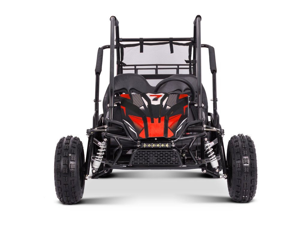 Stylová, pohodlná, rychlá, odolná, to je elektrická buggy MiniRocket ECOBuggy. Buggina je osazena 2000W motorem, který jej rozpohybuje na rychlost atakující 40km/h. Bezpečnost je zaručena díky ochrannému rámu kolem celé buggy. O brždění se stará dvojice hydraulických brzd umístěných na zadní nápravě. ECOBuggy je také vybavena zadním nosičem věcí/zavazadel, který od kokpitu odděluje bezpečnostní síť. ECOBuggy má velice jednoduché ovládání pomocí tlačítek umístěných na přístrojové desce. naleznete tam 3 rychlosti, zpátečku a ukazatel stavu baterií. ECOBuggy je ideální volba pro ty, kteří si chtějí užít jízdu v terénu, ale nechtějí řešit servis motorů, výměnu olejů a další s nepříjemnosti spojené s benzínovým modelem. Nehlučný provoz, pouze šum elektromotoru.