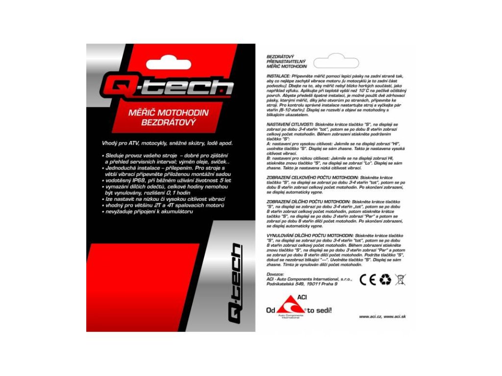 Měřič motohodin bezdrátový s nulovatelným počítadlem, Q-TECH (červený)