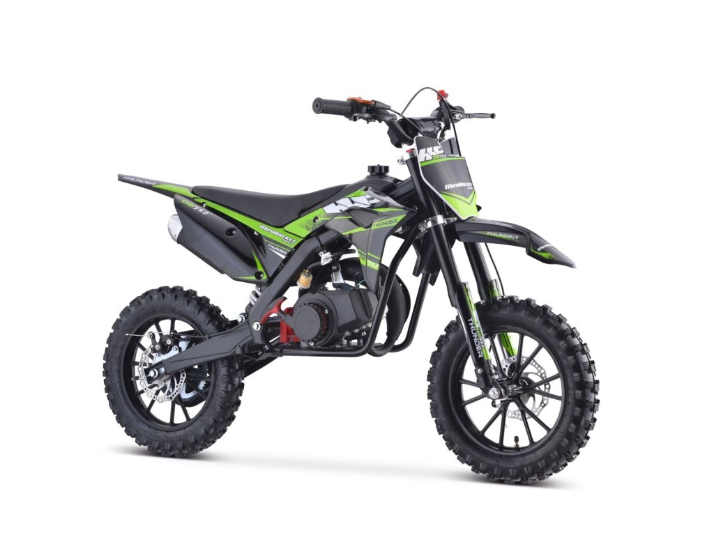 Absolutní novinka pro tento rok- Minicross Thunder s úplně novou přední hydraulickou vidlicí, která doposud nebyla použita na žádném modelu minicross. Robustní trubkový rám, který je nově i pod motorem!
