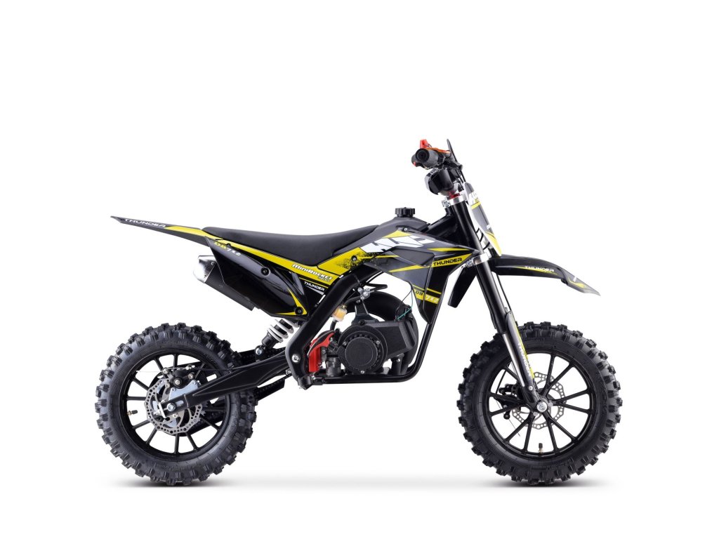 Absolutní novinka pro tento rok- Minicross Thunder s úplně novou přední hydraulickou vidlicí, která doposud nebyla použita na žádném modelu minicross. Robustní trubkový rám, který je nově i pod motorem!