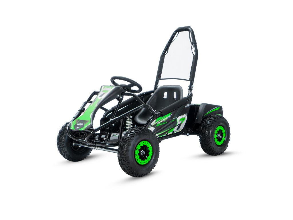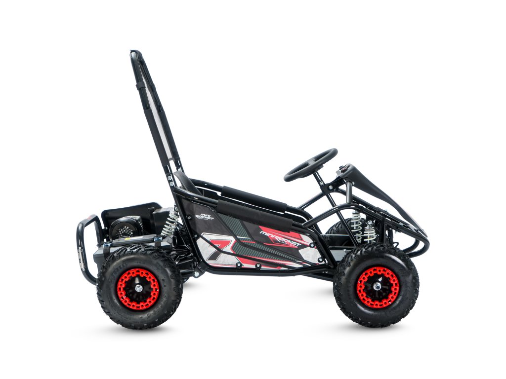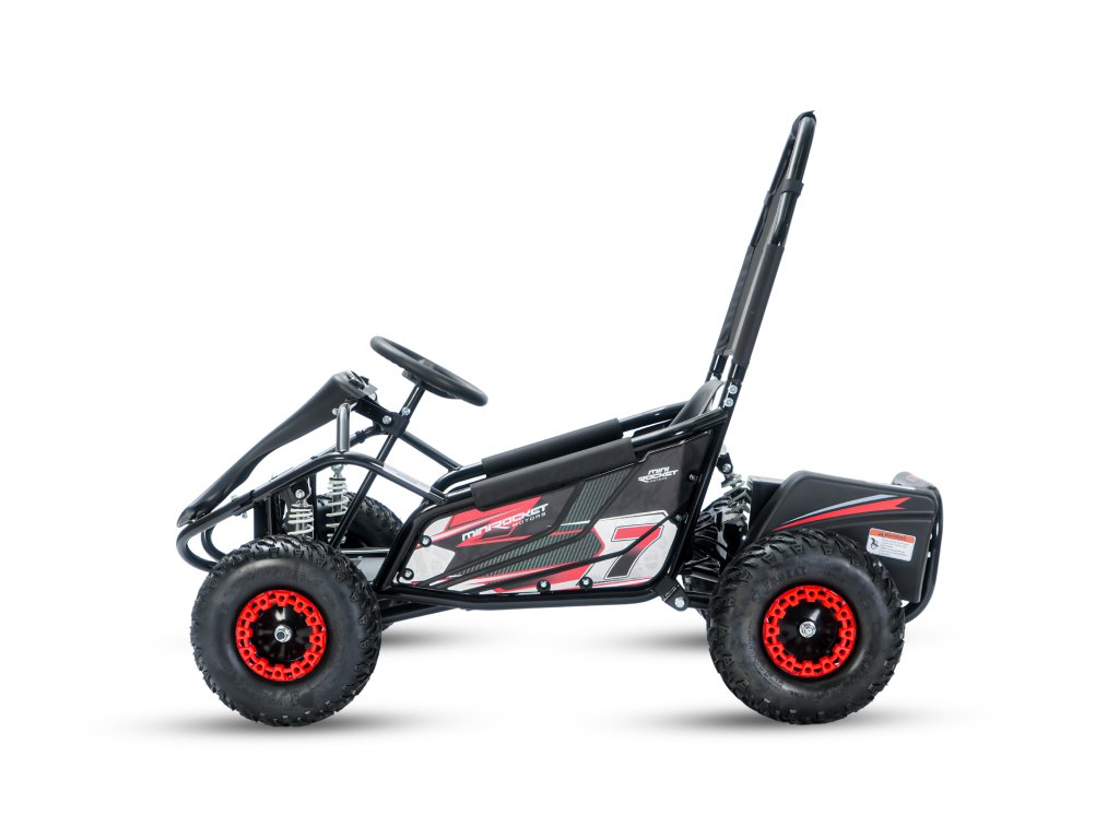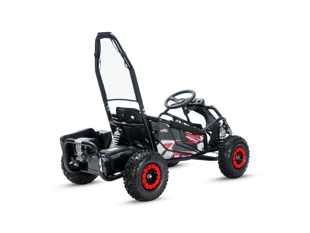 MiniRocket Motors Eco MudMonster 1000W je moderní elektrická buggy pro děti, která spojuje bezpečnost, výkon a ekologický pohon v jednom. Díky bezkartáčovému 48V motoru s výkonem 1000W a dvoustupňovým omezovačem rychlosti je vhodná pro začátečníky i pokročilé malé řidiče. Ideální pro věk cca 4–10 let.