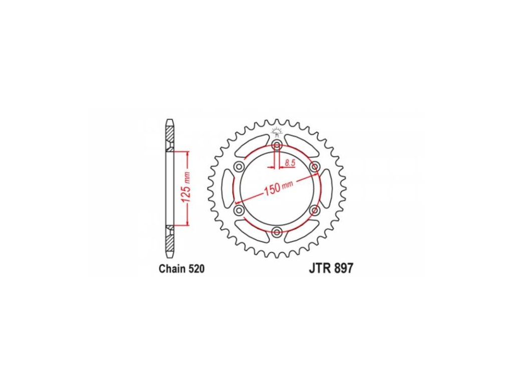 Zadní rozeta XMOTOS XB37/XB39 Počet zubů - 43 Vnitřní průměr rozety - 125mm Rozteč šroubů - 6x 75mm Rozteč šroubů...