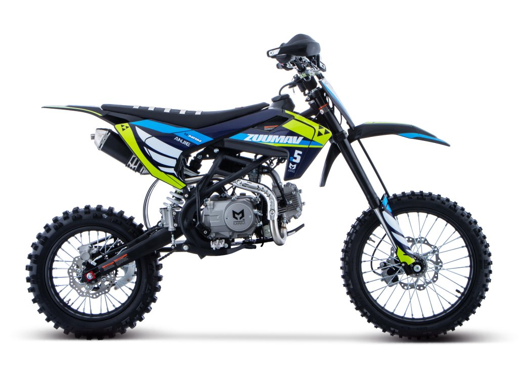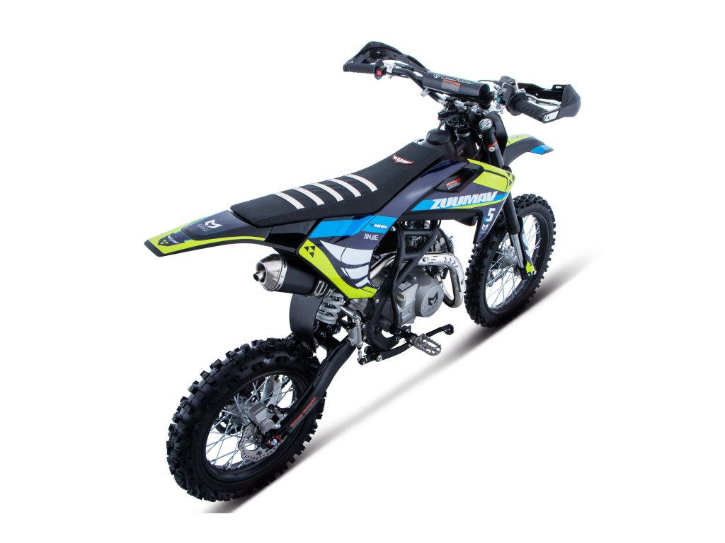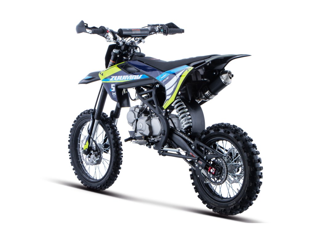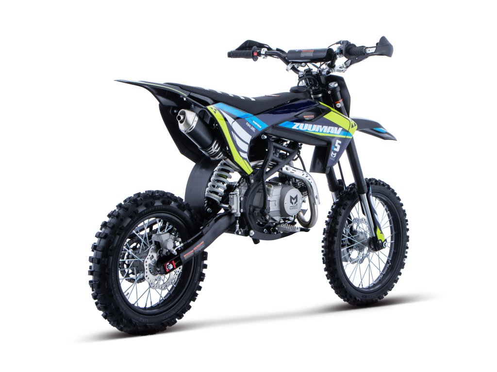 Pitbike Zuumav S5 125cc je čtyřtaktní motorka určená pro děti ve věku 9–14 let, ideální pro začínající i pokročilé jezdce. Má výkon 6,3 kW, manuální čtyřrychlostní převodovku, hydraulické kotoučové brzdy a kombinovaný elektrický i nožní startér. Kola mají rozměry 17” vpředu a 14” vzadu, což zajišťuje stabilitu a komfort při jízdě.