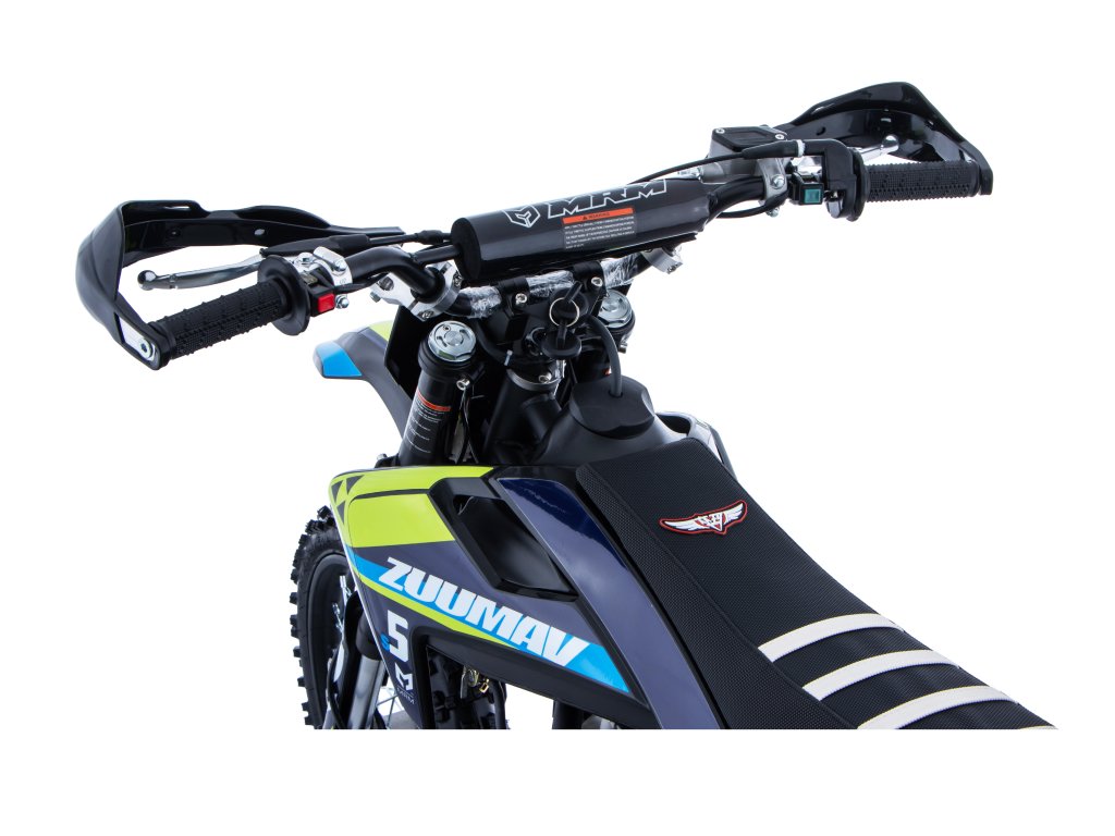 Pitbike Zuumav S5 125cc je čtyřtaktní motorka určená pro děti ve věku 9–14 let, ideální pro začínající i pokročilé jezdce. Má výkon 6,3 kW, manuální čtyřrychlostní převodovku, hydraulické kotoučové brzdy a kombinovaný elektrický i nožní startér. Kola mají rozměry 17” vpředu a 14” vzadu, což zajišťuje stabilitu a komfort při jízdě. Motorka je navržena pro zatížení až 95 kg a má odolný rám z vysokopevnostní oceli.