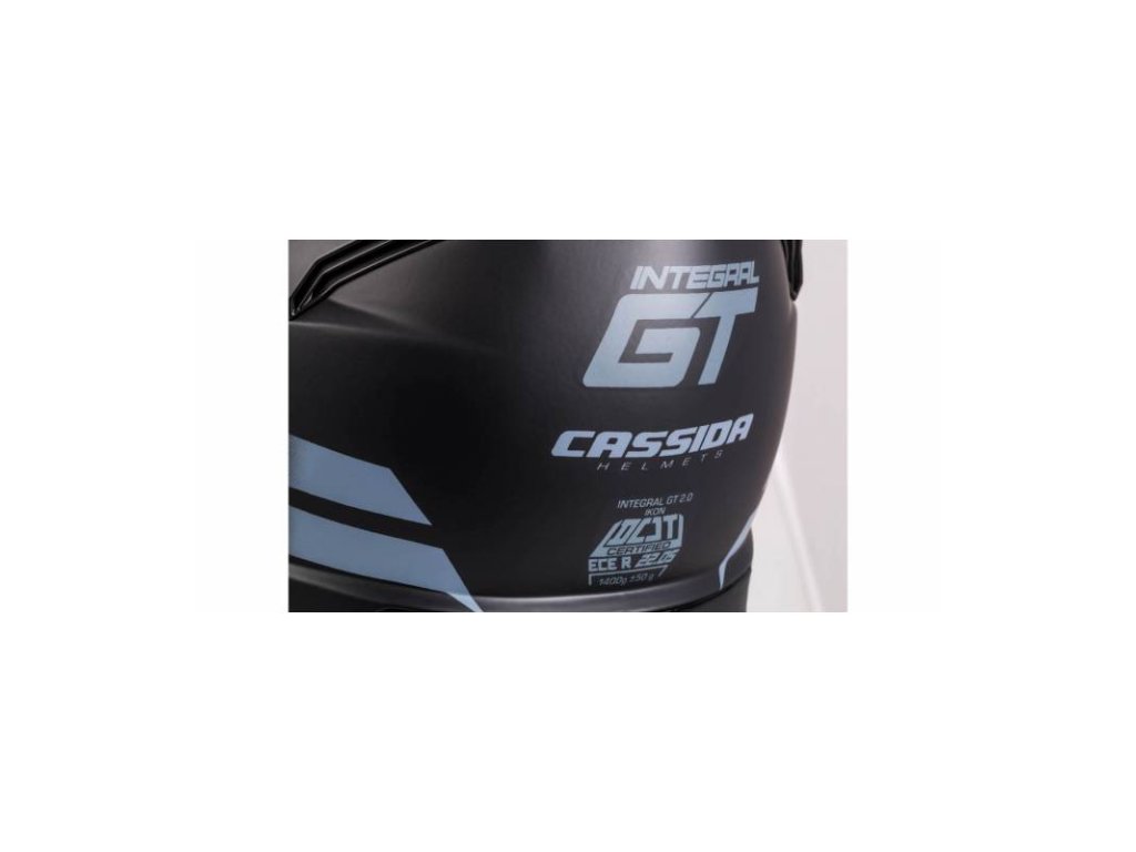 přilba Integral GT 2.0 je sportovně/cestovní model nabízející integrální přilbu se sklolaminátovou skořepinou a standardy přileb vyšší střední třídy. Skolaminátová skořepina, příprava pro sluchátka komunikátorů a komfortní interier s límcem obepínajícím hlavu ve spodních partiích přilby disponuje systémem odnímatelných lícnic Cassida Safety Opening System (Cassida SOS).