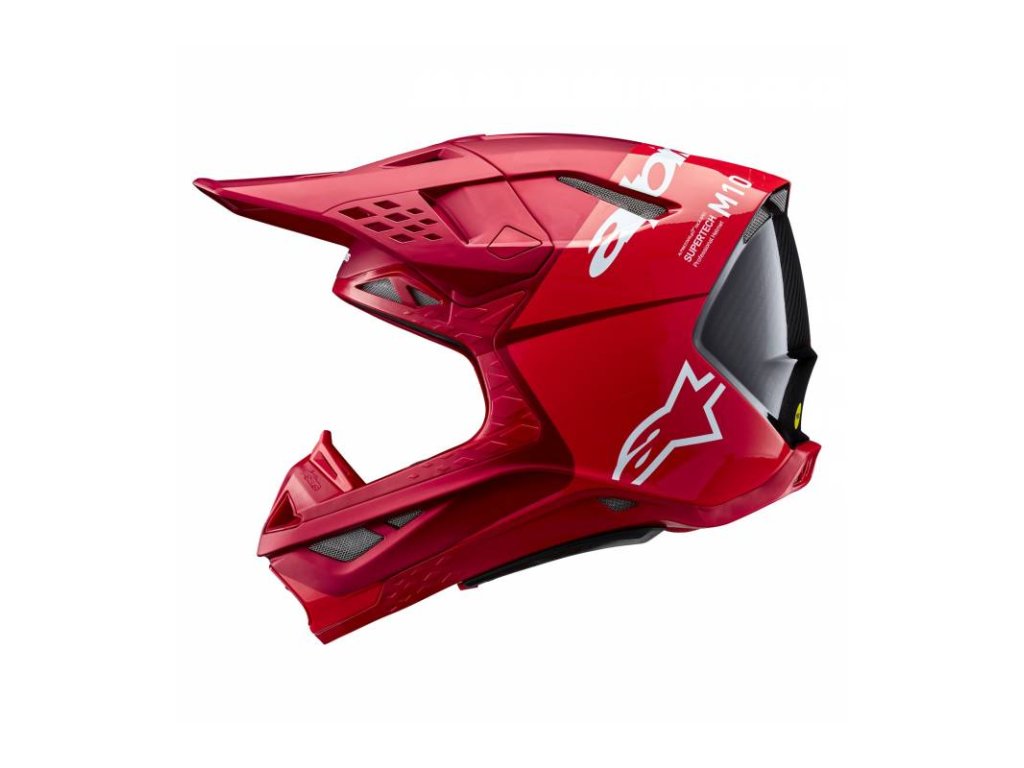 Přilba Supertech M10 je výsledkem více než 5-ti letého vývoje, přípravy a testování ve spolupráci s nejlepšími jezdci. Cíl byl nabídnout co nejbezpečnější ochrannou, terenní přilbu s velkým množstvím detailů, které poskytují perfektní komfort, ventilaci a optimální hmotnost. Přilba S-M10 je první přilba vyvinutá a testovaná v novém vývojovém centru společnosti ALPINESTARS zaměřeném na vývoj motocyklových přileb. Verze s certifikačním standardem ECE 22.06 prošla dalším intenzivním vývojem, který se projevil na úpravách a vylepšeních oproti původní verzi 22.05. Konstrukce: Vícekompozitní skořepina s vnější vrstvou z výběrového 3K karbonu. Jednotlivé 3 vrstvy materiálů skořepiny plní konkrétní role při přenosu a roznesení rázových sil do vnitřního jádra z EPS polysterenu. Vnější vrstva z 3K karbonu s vysokou hustotou úpletu poskytuje perfektní tuhost, efektivní rozložení a distribuci absorbované energie skrze vrstvy. Druhá vrstva s rovnoběžným uspořádáním karbonových vláken poskytuje jedinečnou radiální tuhost, zabraňuje deformacím a tlakům, ale souběžně umožňuje kontrolované vychýlení nutné pro snížení přenesené rázové energie. Třetí vrstva obsahuje aramidová vlákna poskytující ochranu proti průniku překážky skrze skořepinu. Vrstvy jsou spojeny výběrovou směsí epoxidové pryskyřice, která je předpřipravena na povrchu jednotlivých vrstev od výrobce materiálů. Proces spojení vrstev a vytvrzování probíhá v podtlakové peci za vysokých teplot. Skořepina přesahuje hodnoty požadované standardem homologace ECE a DOT a splňuje hodnoty pro závody spadající pod organizaci FIM. 28 ventilačních portů, z toho 18 vstupních a 10 výstupních pro maximální výměnu vzduchu a vysokou prodyšnost. Přepracovaný design spodní části přilby s pozměněným tvarem přední ventilace a přidanými adaptéry z poloměkkého plastu pro dodatečnou ochranu a roznesení rázové energie v případě použití společně s protektory krční páteře. Dostupné ve 4 různých velikostech skořepiny (XS-S/M/L/XL-2XL). Vnitřní jádro z EPS polysterenu se 4-mi různými hustotami je složeno z více dílů. Každý z dílů má různou pevnost a hustotu materiálu. Dle těchto vlastností je v přilbě cíleně umístěn. Bezpečnost: Snížený profil přilby a měkčí lem v bočních partiích zvyšuje ochranu klíční kosti. Systém zapínání pomocí dvojitých D kroužků z nerez oceli zaručuje zajištění přilby na hlavě a bezpečné a rychlé rozepnutí. Tvar spodní části je kompatibilní s protektory krční páteře BNS. MIPS systém pro redukci rotačních rázových sil a související prevenci poranění mozku. Lícnice s rychloodepínacím systémem ERS. Aktuální verze disponuje o 46 % lepšími výsledky přímých nárazových zkoušek běžnou pádovou rychlostí nad limitní hodnoty normy. V případě pomalé pádové rychlosti disponuje aktuální verze o 23 % lepšími výsledky přímých nárazových zkoušek nad limitní hodnoty normy. V případě narychlené pádové rychlosti disponuje aktuální verze o 28 % lepšími výsledky přímých nárazových zkoušek nad limitní hodnoty normy. V případě rotačního nárazu pod úhlem jiným než 90° disponuje aktuální verze o 76 % lepšími výsledky nad limitní hodnoty normy. Přilba je CE certifikovaná dle standardu ECE 22.06. Systém donastavení interiéru přilby A-HEAD: Patentovaný systém A-HEAD slouží k co nejlepšímu individuálnímu výškovému i obvodovému donastavení vnitřní části a úhlu nastavení pozice přilby na hlavě. Tři pozice nastavení vrchní části výstelky přilby umožní přesnější obepnutí horní části lebky. Prostor mezi nastavitelnou částí a EPS jádrem dovoluje lepší ventilaci ve vrchní části interiéru přilby. Systém vnitřního nastavení pozice kšiltu pomocí nastavení pozice přilby na hlavě. Patentovaný mechanismus fixace kšiltu a rychloodepínání kšiltu v případě pádu. Lícnice interiéru s bezpečnostním systémem rychloodepínání lícnic (ERS system) a přípravou pro systém EJECT (sundání přilby z hlavy pomocí balonku plněného vzduchem, který se používá při závodech amerického motokrosu asociace AMA). Hlavní přednosti produktu: Ventilace a interiér přilby jsou výsledkem testování teplotních map přilby, díky kterému byl přizpůsobený tvar, počet a pozice ventilačních otvorů. Aerodynamicky optimalizovaný kšilt s patentovaným systémem rychloodepnutí kšiltu v případě pádu nově s prodlužovacím adaptérem kšiltu, který poskytuje zvýšenou ochranu proti odlétajícími bahnu, kamení a zlepšuje stítění od dopadajícího slunečního svitu. Komfortní interiér se systémem A-HEAD, navazující na funkční ventilační soustavu přilby. Plně odnímatelná výstelka s textilními panely s příměsí vláken Coolmax® (napomáhá lepší prodyšnosti, rychlému schnutí a odvodu potu) a antibakteriálních vláken Talent Yarn. Řemínek zapínání je široký 26 mm pro lepší komfort. Vyrobený z polyesteru, šetrného při kontaktu s pokožkou a zapínání pomocí dvojitých DD kroužků. Velký průzor kompatibilní i s největšími typy motokrosových brýlí, dostupných na trhu. Příprava s prostupy pro vedení hadice hydrobagů na obou stranách pod lícnicemi interiéru. Odnímatelný nosní deflektor. Záslepky s přípravou pro sluchátka komunikátorů. Dobře omyvatelná a odolná TPE povrchová úprava laku přilby. Náhradní kšilt a komfortní textilní taška součástí balení. Lícnice s tloušťkou +5 mm pro přesnější dopasování přilby dostupná v rámci příslušenství. Hmotnost přilby ±1260g pro velikost M, ±1310g vč. spodních krytů lícnic a ±1370g vč. prodlužovacího adaptéru kšiltu.
