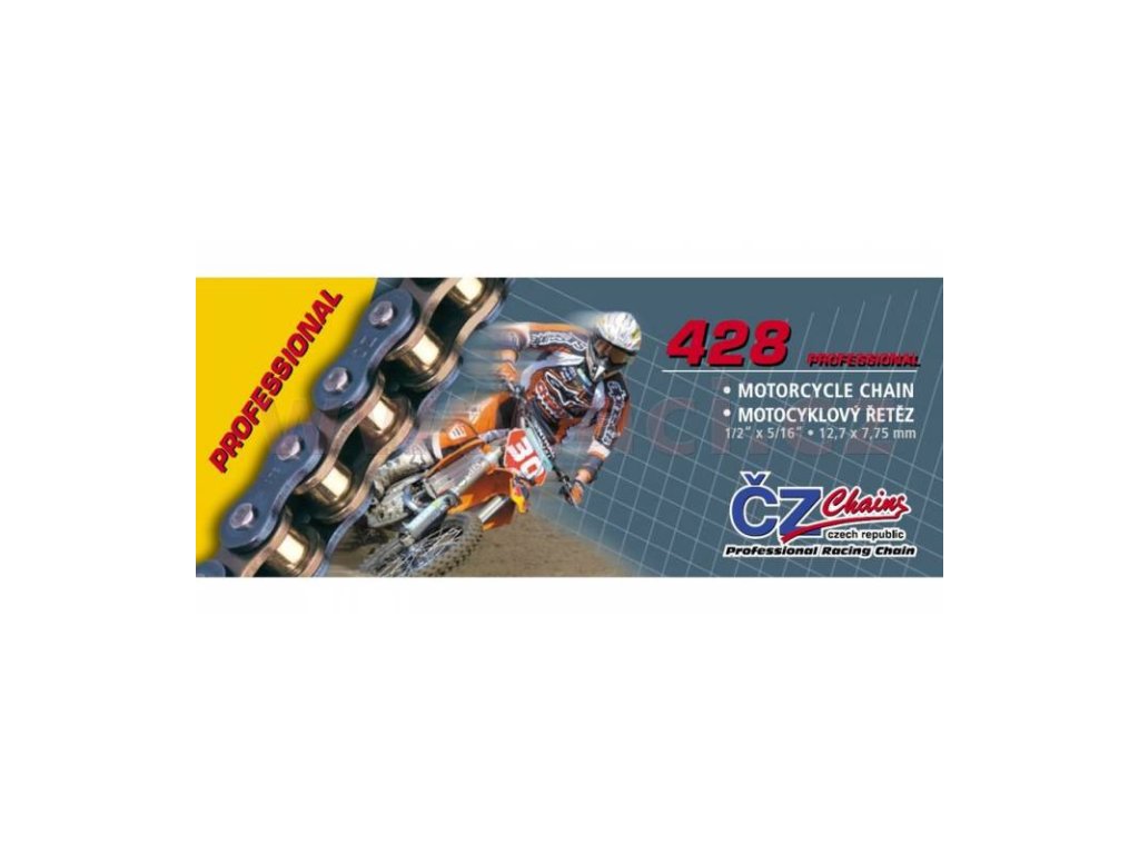 řetěz 428MX, ČZ (barva zlatá, 110 článků vč. rozpojovací spojky CLIP)