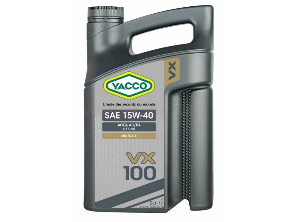 YACCO VX100 15W40 - vyvinutý pro vozy s turbodmychadly i jiné benzinové či naftové motory používané v různých podmínkách. Poskytuje vynikající mazání a ochranu motorů používaných při vysokých teplotách. Může být použit v motorech s katalyzátorem.