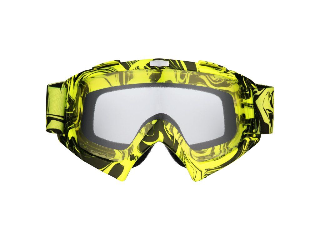 Dvojcestný ventilačný systém optimalizuje prúdenie vzduchu cez vnútornú stranu šošoviek, takže zorné pole zostáva bez zahmlievania. Vďaka šošovkám s oblúkovým dizajnom je zorné pole oveľa širšie. Sklo okuliarov v prípade verzie s povrchovou úpravou navyše neoslňuje a má dobrú odolnosť proti nárazu a poškriabaniu, ako aj ochranu proti UV žiareniu. Zorné pole je k dispozícii v rôznych farbách (podľa modelu okuliarov). Ekologická, mäkká trojvrstvová pena zabezpečuje najlepšiu absorpciu potu a ďalšie pohodlie. Ergonomicky tvarované motokrosové okuliare odolné proti nárazu sú tiež odolné proti vetru a prachu, takže sú ideálne do každého počasia a pre všetky ročné obdobia. Tieto okuliare sú kompatibilné s našimi prilbami a vďaka farebnému pásku, ktorý je k dispozícii v rôznych farbách, sa obzvlášť dobre hodia k našim motokrosovým prilbám.