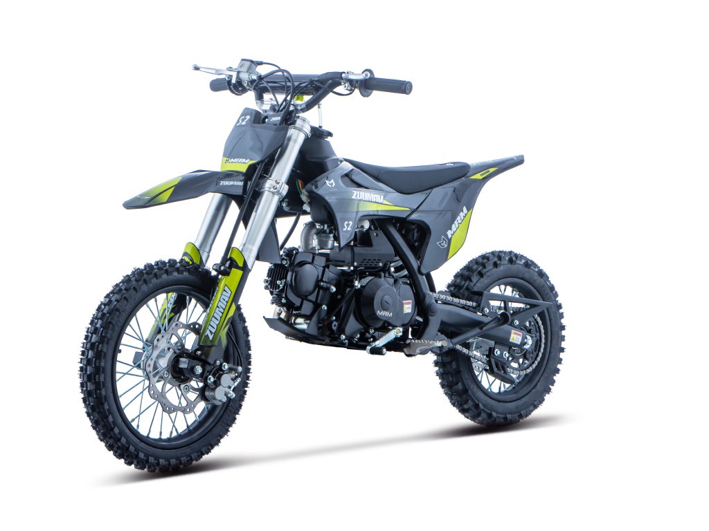 ZUUMAV S2-125 – spolehlivý pitbike pro mladé jezdce. ZUUMAV S2-125 je moderní pitbike vybavený čtyřtaktním motorem, ideální pro začínající i zkušenější jezdce. Nabízí kombinaci výkonu, spolehlivosti a snadného ovládání. Díky kompaktním rozměrům a pohodlné výšce sedla je vhodný pro širokou věkovou kategorii.